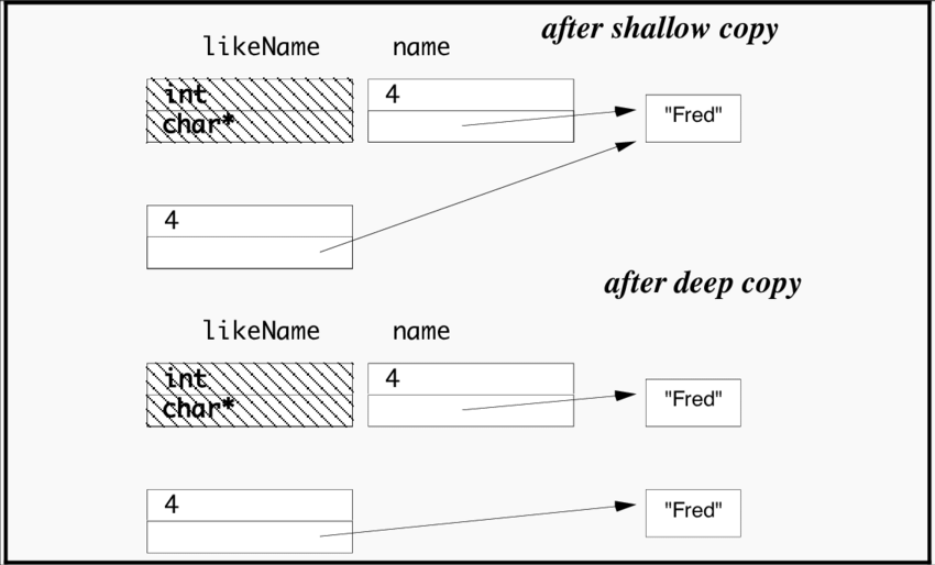 따라서 원본 객체가 소멸할 경우(= heap 영역에 할당된 공간이 해제될 경우) 복사본 객체의 멤버 또한 공간을 참조할 수 없게 된다. 이러한 경우를 방지하고 싶다면 깊은 복사를 사용해야 한다.