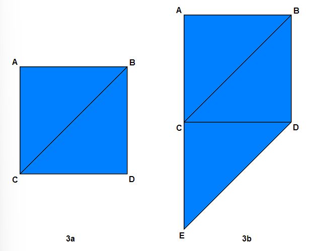Figure 3a contains a square made up of two triangles; figure 3b contains a pentagonal shape made up of three triangles.