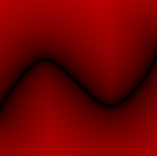 Distance Field 텍스처. 픽셀의 R값이 곡선으로부터의 거리를 나타내며, 거리가 가까울수록 어둡게 표시된다